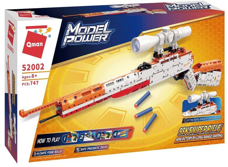 QMAN ® 52002, technic-kompatibilis építőjáték, 747 db építőelem, Mauser 98k játék-ismétlőpuska játékfegyver.