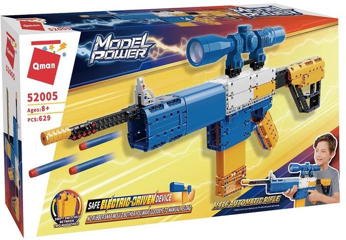 QMAN ® 52005, technic-kompatibilis építőjáték, 629 db építőelem, M4 gépkarabély automata játékpuska, játékfegyver.